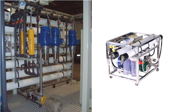 The reverse osmosis process consists of applying pressure to a salt water solution and forcing it through a semi-permeable membrane. The water passes through the membrane, from the side where the salt concentration is highest, toward the side where the salt concentration is lower. The result is that the concentrated solution part is minimized in favour of the freshwater. Our Sea Water Desalination system as well as Containerized Sea Water Desalination Plant use Reverse Osmosis System capable of producing up to 10,000 m3/day with built in pre-treatment & membrane cleaning resulted in removal of metals, minerals & chemical contaminants. Our system makes it convenient to convert sea water to potable water in the world with high recovery rate.